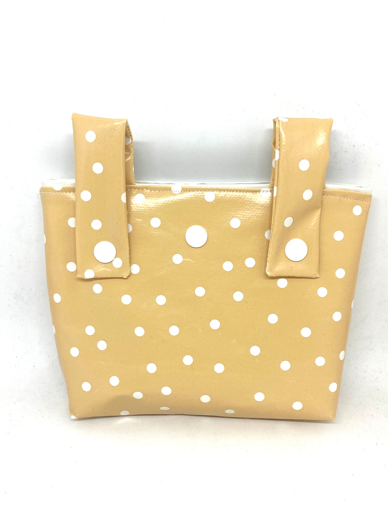 Lenkertasche aus wasserabweisenden Stoff fürs Velo, Laufrad, Dreirad, Trotti, Scooter usw. Kann am Lenker befestigt werden und mit einem Druckknopf oben zugemacht werden.